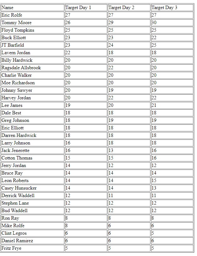 Targets for Each Day
